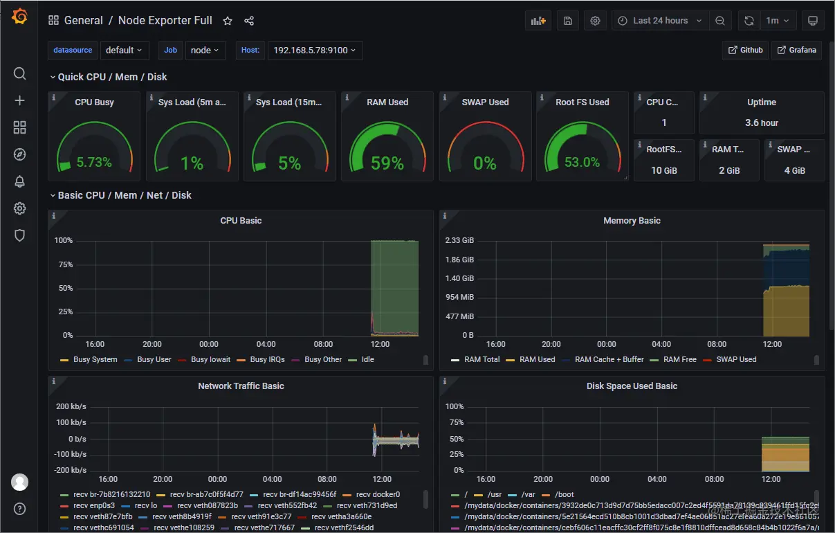 - 导入成功后就可以在Grafana中看到实时监控信息了,是不是够炫酷!