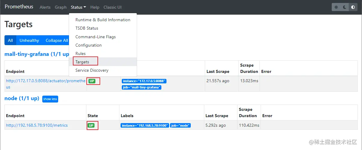 - 重启Prometheus容器,可以通过