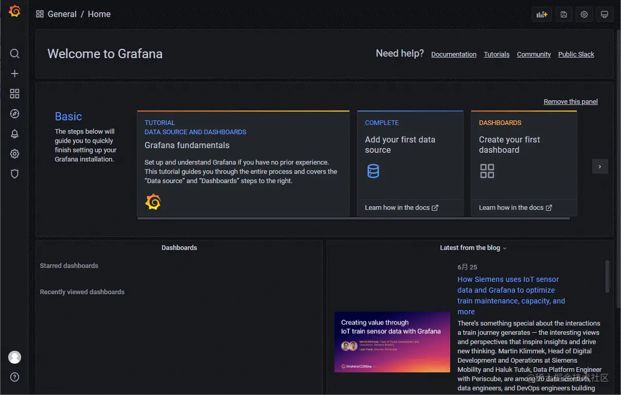 - 登录Grafana后显示界面如下;