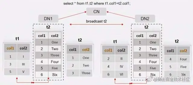 - 原理:CN 根据原语句通过优化器生成带 stream 算子的执行计划,下发给 DN 进行执行,各 DN 执行过程中存在数据交互(stream 节点),stream 算子在 DN 之间建立连接进行数据交互,CN 汇总执行结果并承担大部分计算。