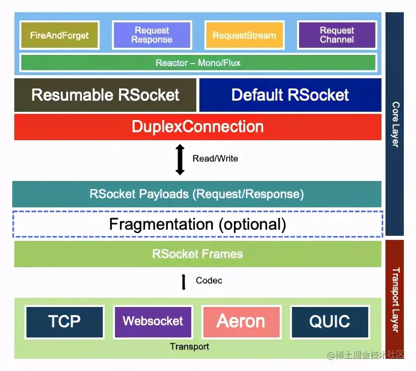 - 如果帧超出16MB,RSocket支持帧分裂重组,也就是拆成更小的帧,接收端再自动重组。