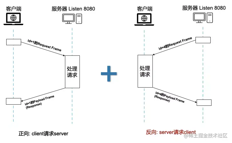 - 当Server请求Client时,发送的请求ID永远为偶数