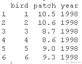 chart(patch ~ bird)