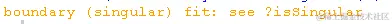 - 对数据拟合一个线性混合效应模型。可以用lmer()来实现。发现“畸形拟合”,“boundary (singular) fit: see ?isSingular