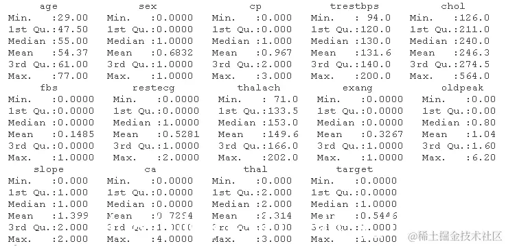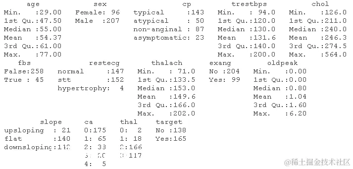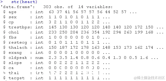 该数据有303个观察值和14个变量。每个观察值都包含关于个人的以下信息。