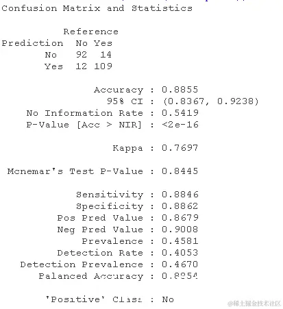 从训练数据的混淆矩阵中,我们知道模型有88.55%的准确性。