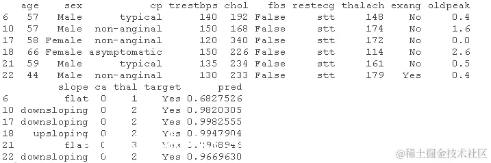 ## type = "response "是用来获得患有心脏病的概率的结果。