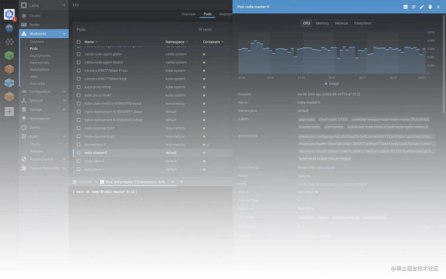 Lens 是适用于 SRE、Ops 和开发人员的 K8s IDE。它适用于任何 Kubernetes 发行版:本地或云端。它快速、易于使用并提供实时可观察性。使用 Lens 可以非常轻松地管理多个集群。如果你是集群操作员,这是必须的。