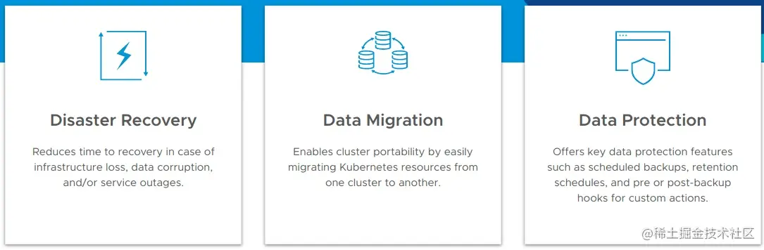 与其他直接访问 Kubernetes etcd 数据库执行备份和恢复的工具不同,Velero 使用 Kubernetes API 来捕获集群资源的状态并在必要时恢复它们。此外,Velero 使你能够在配置的同时备份和恢复你的应用程序持久数据。