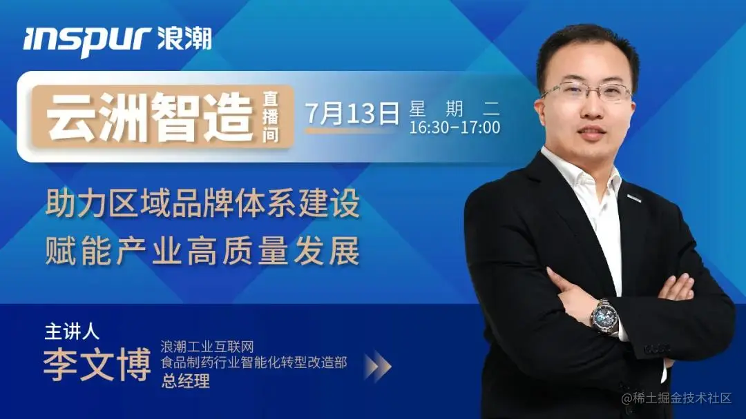 7月13日,浪潮云洲智造直播间第二期正式开讲,分享浪潮云洲助力区域品牌体系建设,赋能地方产业高质量发展建设路径。
