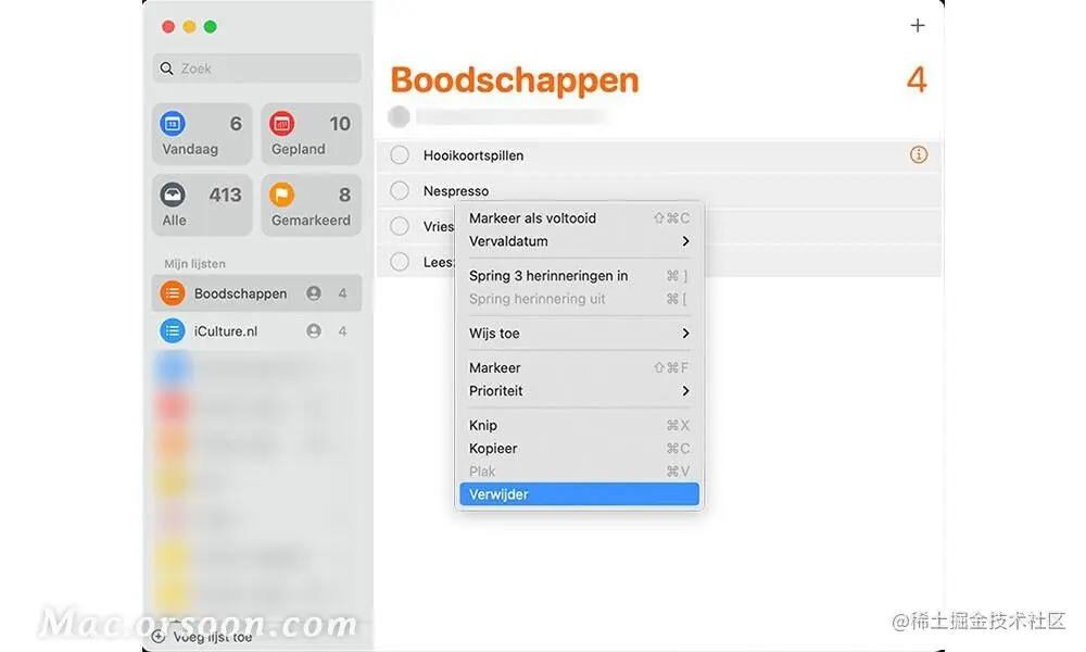 所有项目现已从提醒应用程序中删除,您将不再在已完成的项目中找到它们。但对于购物清单等临时物品来说,这没有问题。