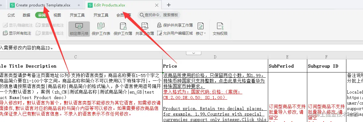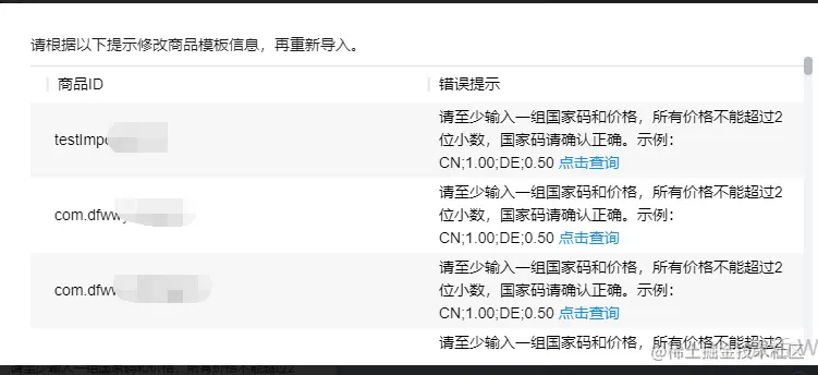 我们想要批量修改华为后台配置的商品信息,按照表格要求填写后上传提示错误:请至少输入一组国家码和价格,所有价格不能超过2位小数,国家码请确认正确。示例:CN;1.00