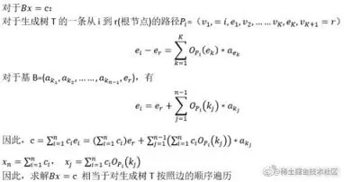 我们可以从根节点进行先序遍历,得到 y2=0, y1-y2=1, y1-y3=10,即依次遍历基 5,基 1,基 4 伪代码:(递归)solve(Vertex p,Tree S){//p 是树 S 的根节点 Vertex v=root(S);if(v==r) y[r]=c[w];else if ((p,v)∈E y[v]=y[p]-c[(p,v)];else y[v]=y[p]+c[(v,p)];solve(v,S.left());solve(v,S.right());}