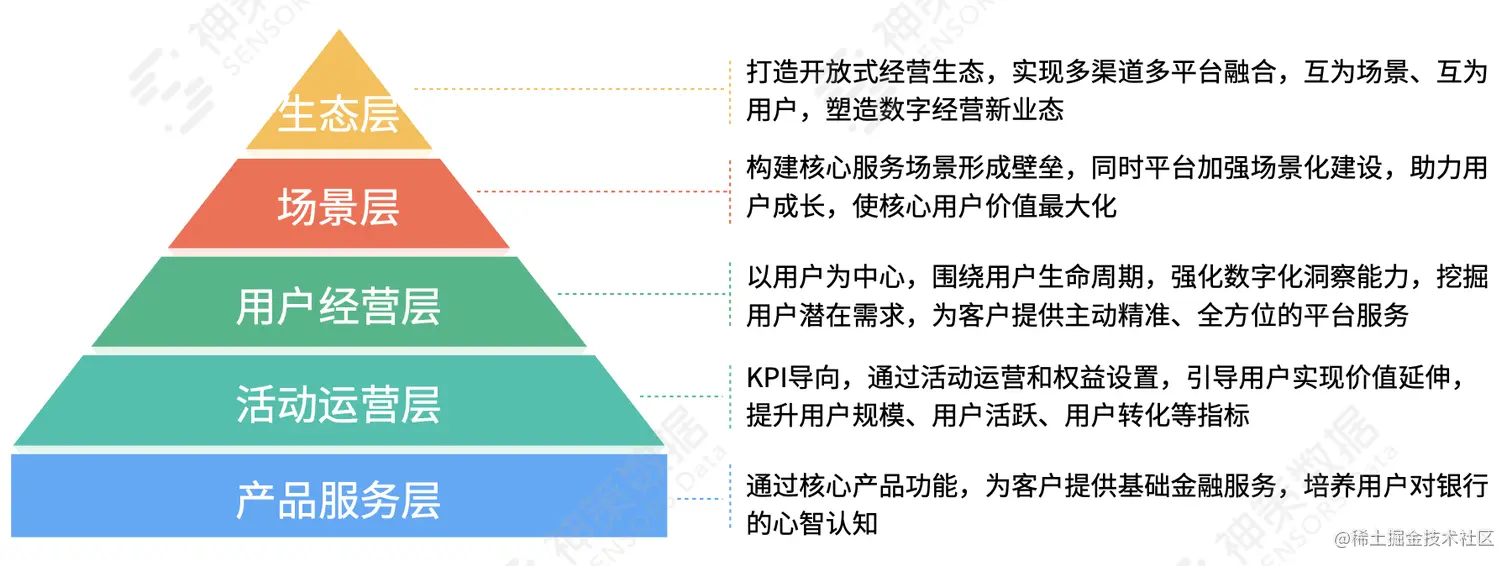 最后,基于以上四步走战略和实践落地,我们希望能够帮助银行在产品服务层、活动运营层、用户经营层、场景层和生态层,实现全行数字化经营层级的跃升。