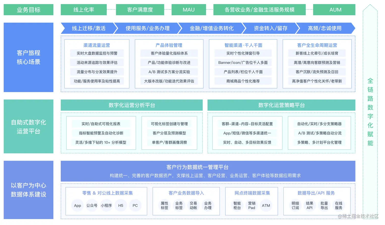 下图为银行以客户为中心的数字化运营体系: