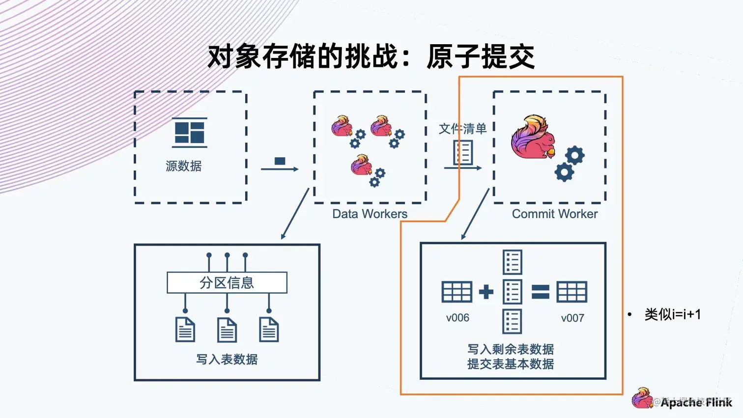 - 首先,Data Workers 会从元数据上读出数据进行解析,然后把一条记录交给 Iceberg 存储;