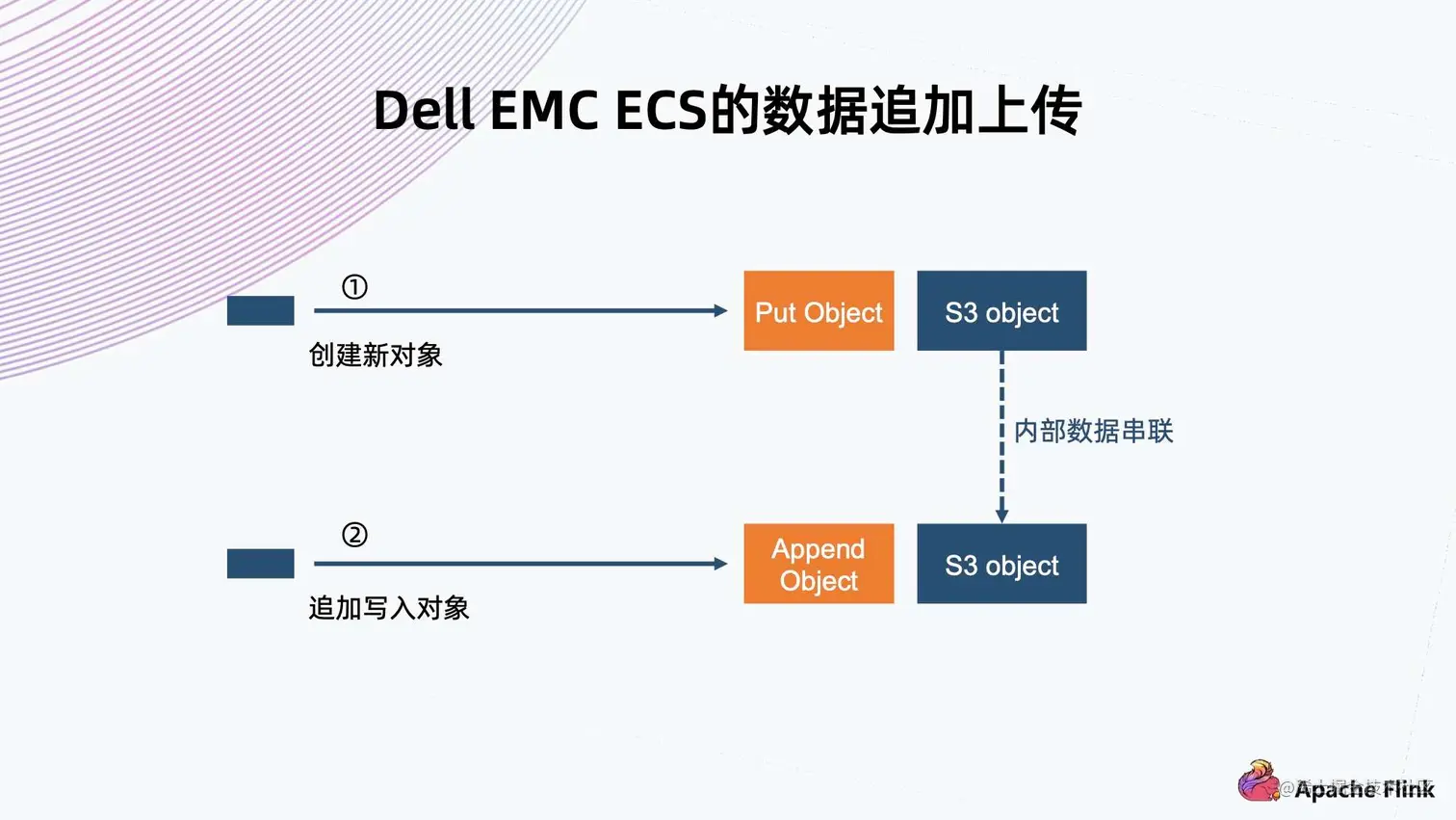 Dell EMC ECS 也是个对象存储,基于这个问题有不一样的解答,它基于 S3 的标准协议有一些扩展,可以支持数据的追加上传。