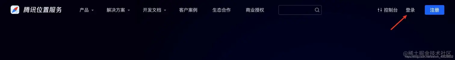 打开腾讯位置服务主页:lbs.qq.com,点击右上角的登录按钮: