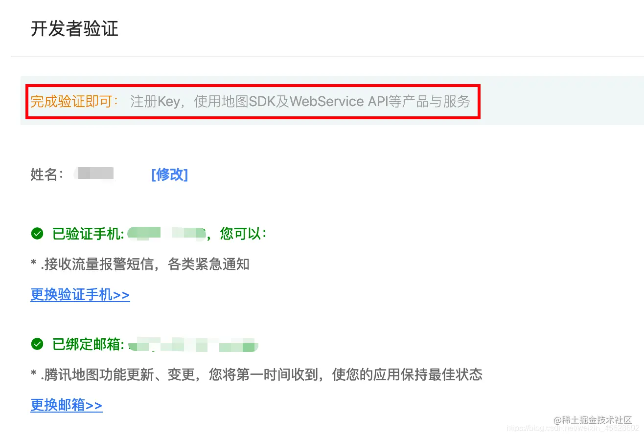 点击控制台,进入开发者信息界面,补全基本用户信息,完成验证。