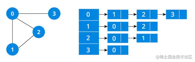 图有两种表示方法:邻接矩阵、邻接链表。不同的场景及算法可能需要不同的图表示方式,一般情况下当结点数量非常庞大时,会造成矩阵非常稀疏,空间开销会较大,此时使用邻接链表的表示方式会占用较少的空间。而如果是稠密矩阵或者需要快速判断任意两个结点是否有边相连等情况,可能邻接矩阵更合适。