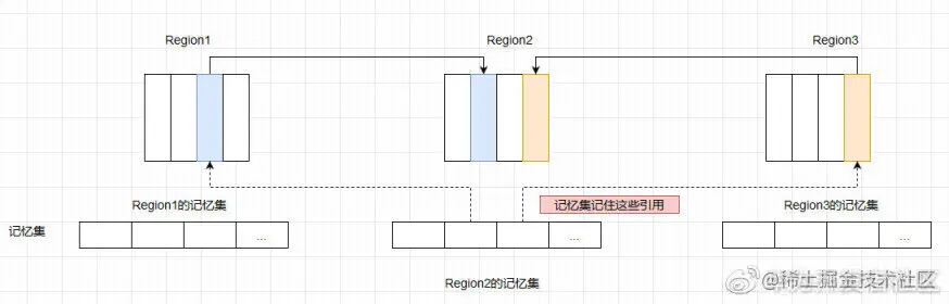 2. 每个 Region 都有一个对应的记忆集。