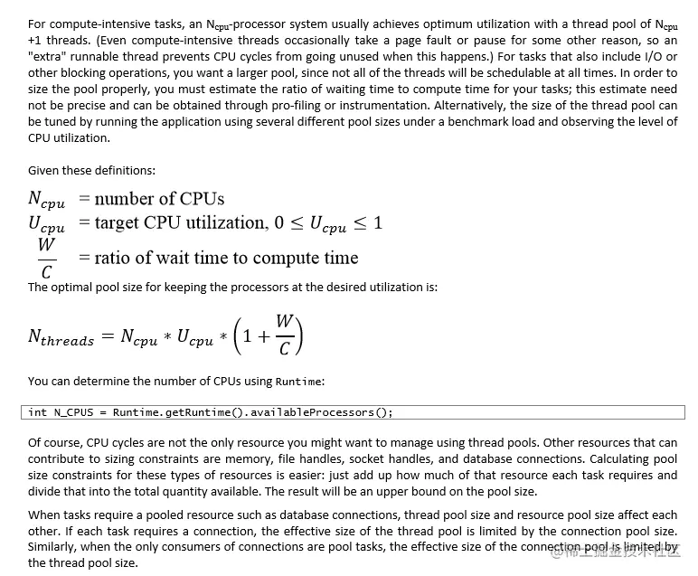 如上图,在《Java Concurrency in Practice》一书中,给出了估算线程池大小的公式: