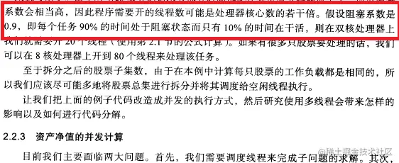 现在假设将派系二的公式等于派系一公式,即Ncpu/(1-阻塞系数)=Ncpu*(1+w/c),===》阻塞系数=w/(w+c),即阻塞系数=阻塞时间/(阻塞时间+计算时间),这个结论在派系二后续中得到应征,如下图: