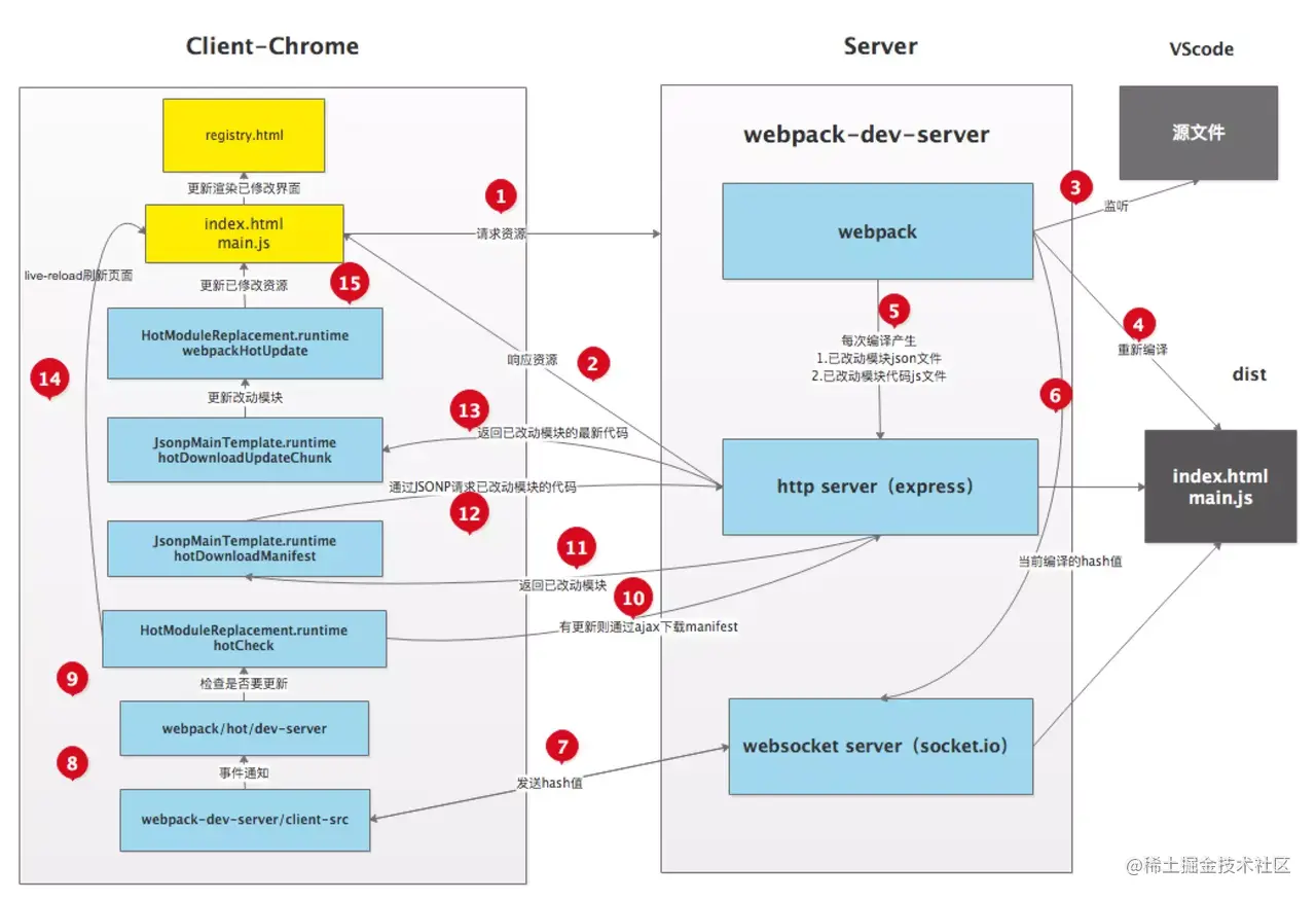 热更新: 另一种是基于 WDS (Webpack-dev-server) 的模块热替换,只需要局部刷新页面上发生变化的模块,同时可以保留当前的页面状态(webpack-dev-server自己做不到,需要配合react-hot-loader使用),比如复选框的选中状态、输入框的输入等