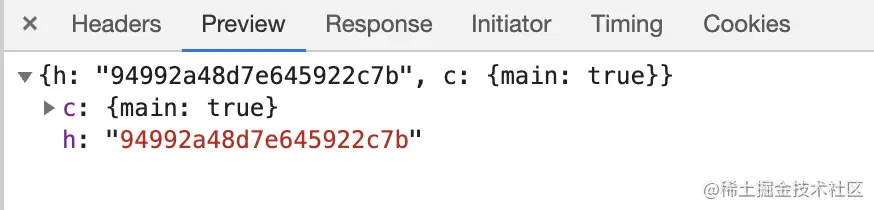 c 字段代表,当前变化的 module , h 字段代表当前编译的 hash ,用于作为下次请求文件的前缀