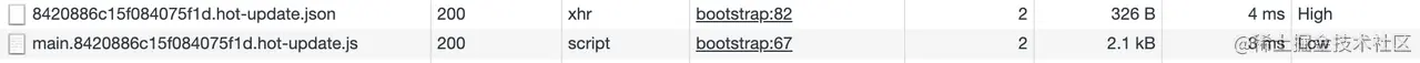 再来看一下浏览器端,代码修改保存,webpack编译后,浏览器都会发出一下俩个请求