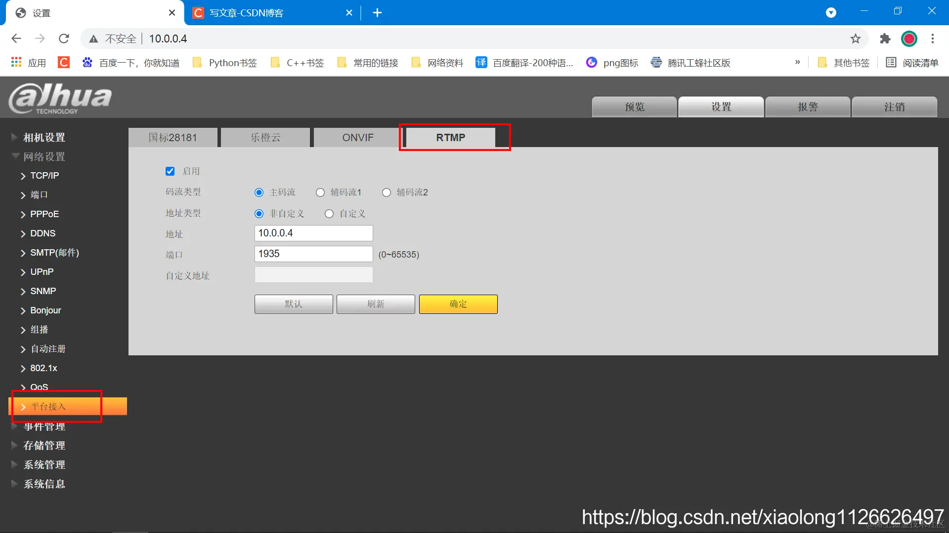 平台接入里可以配置RTMP地址:
