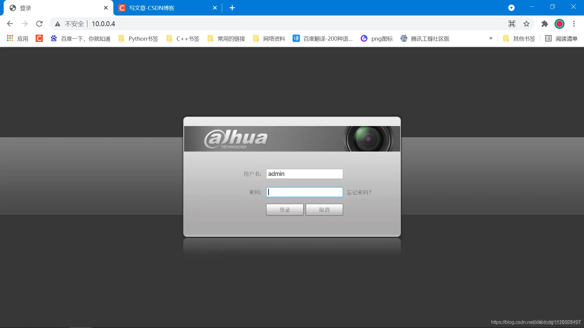 password: 摄像头登录密码
