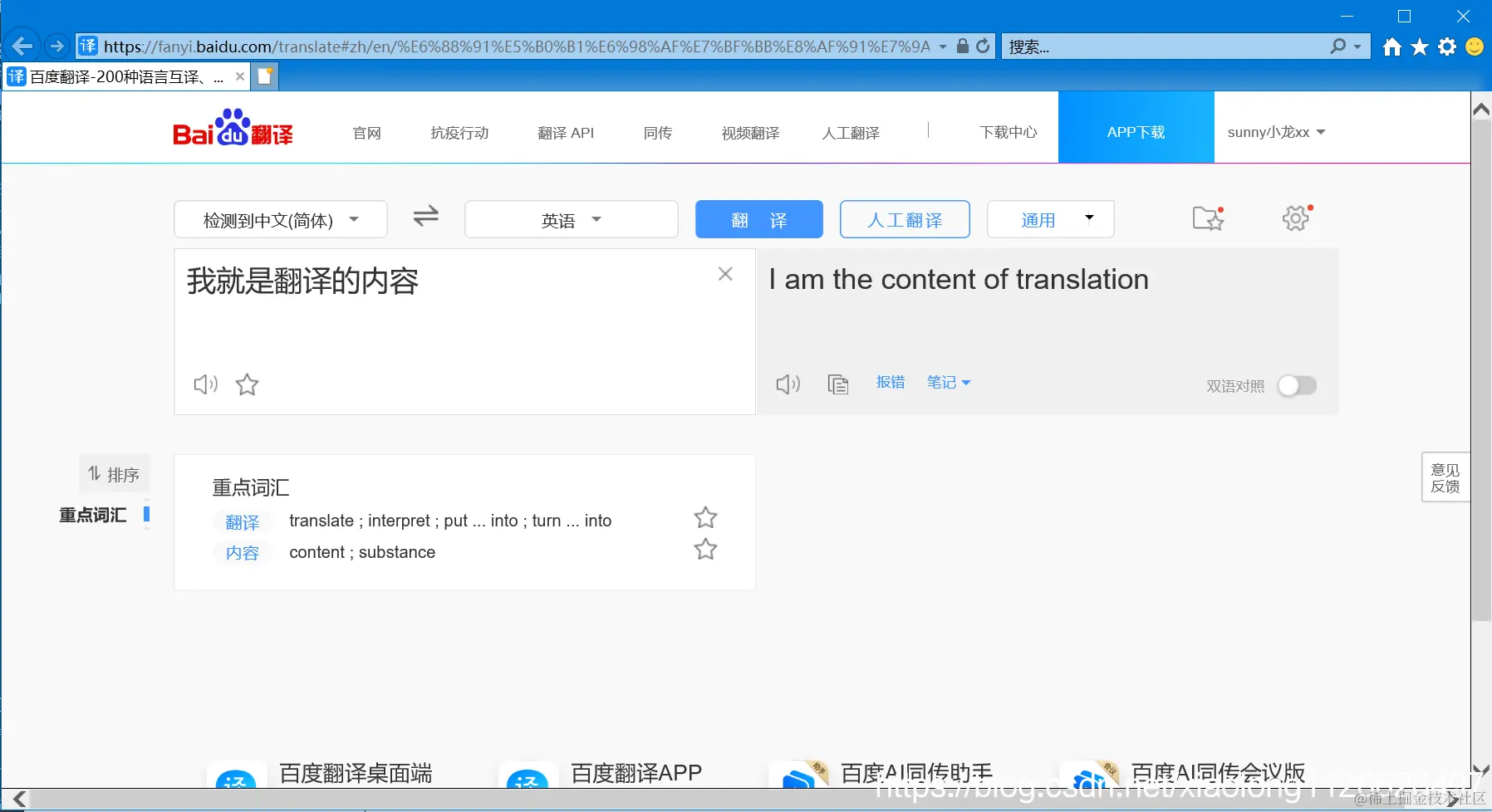 https://fanyi.baidu.com/translate#en/zh/I am the content of translation
