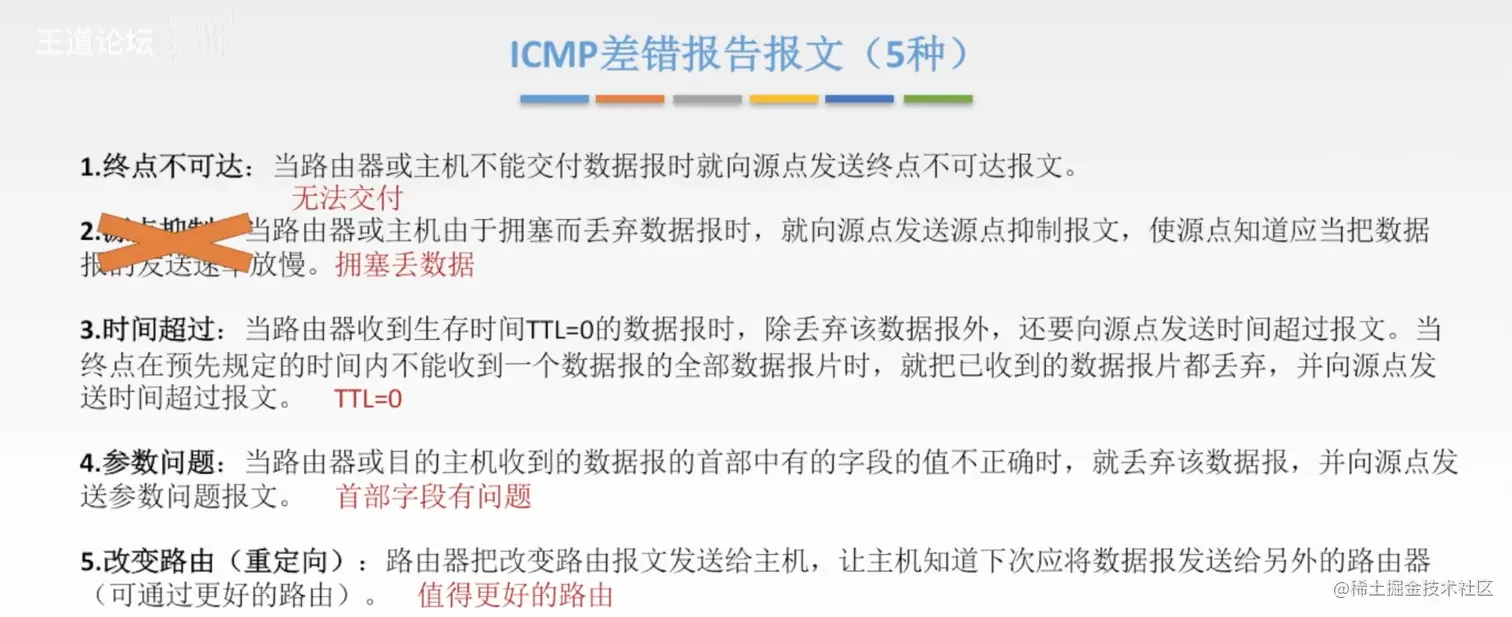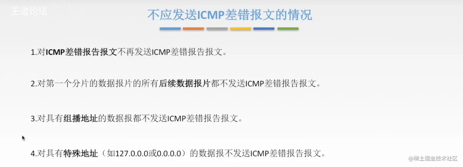 - 第一条:如果ICMP差错报文 出现差错,不对这个错误发送 ICMP差错报文