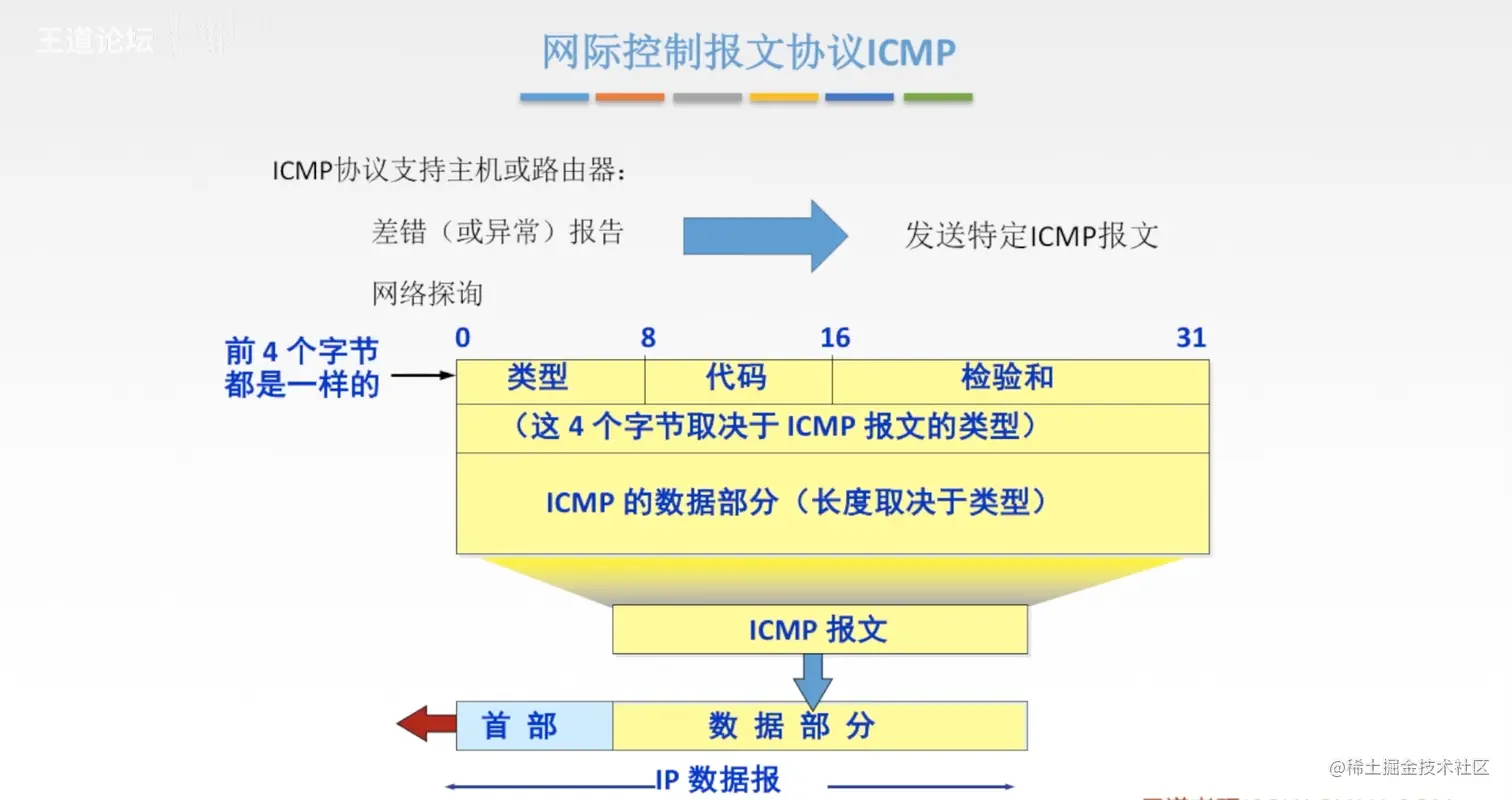 - 检验和:检验ICMP报文