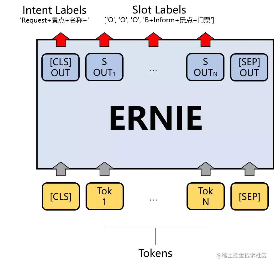 2.设计loss function JointErnie模型会取出ErnieModel的sequence_output接入一个输出维度为槽位类别数的线性层得到slot_logits,并将pooled_output接入一个输出维度为意图类别数的线性层得到intent_logit。