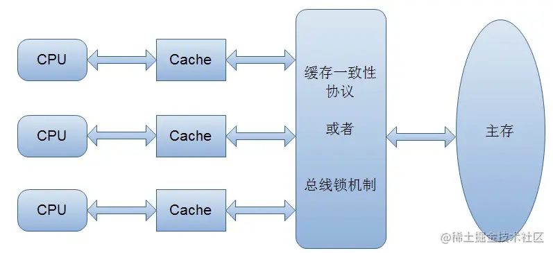 当程序在运行过程中,会将运算需要的数据从主存复制一份到CPU的高速缓存当中,那么CPU进行计算时就可以直接从它的高速缓存读取数据和向其中写入数据,当运算结束之后,再将高速缓存中的数据刷新到主存当中。