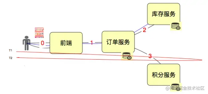 - 如果我们要从用户的角度来下一个订单,那 1、2、3 应该在一个 T 中,这就是业务级的了。