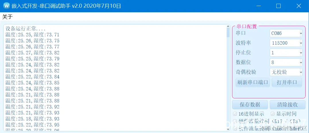 USART1_Printf("温度:%0.2f,湿度:%0.2f\r\n",Temperature,Humidity);
