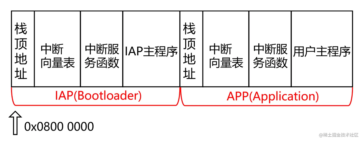 总的来说STM32的IAP方案实现需要在进行用户程序之前加一段Bootloader程序,BootLoader程序的作用就是:
