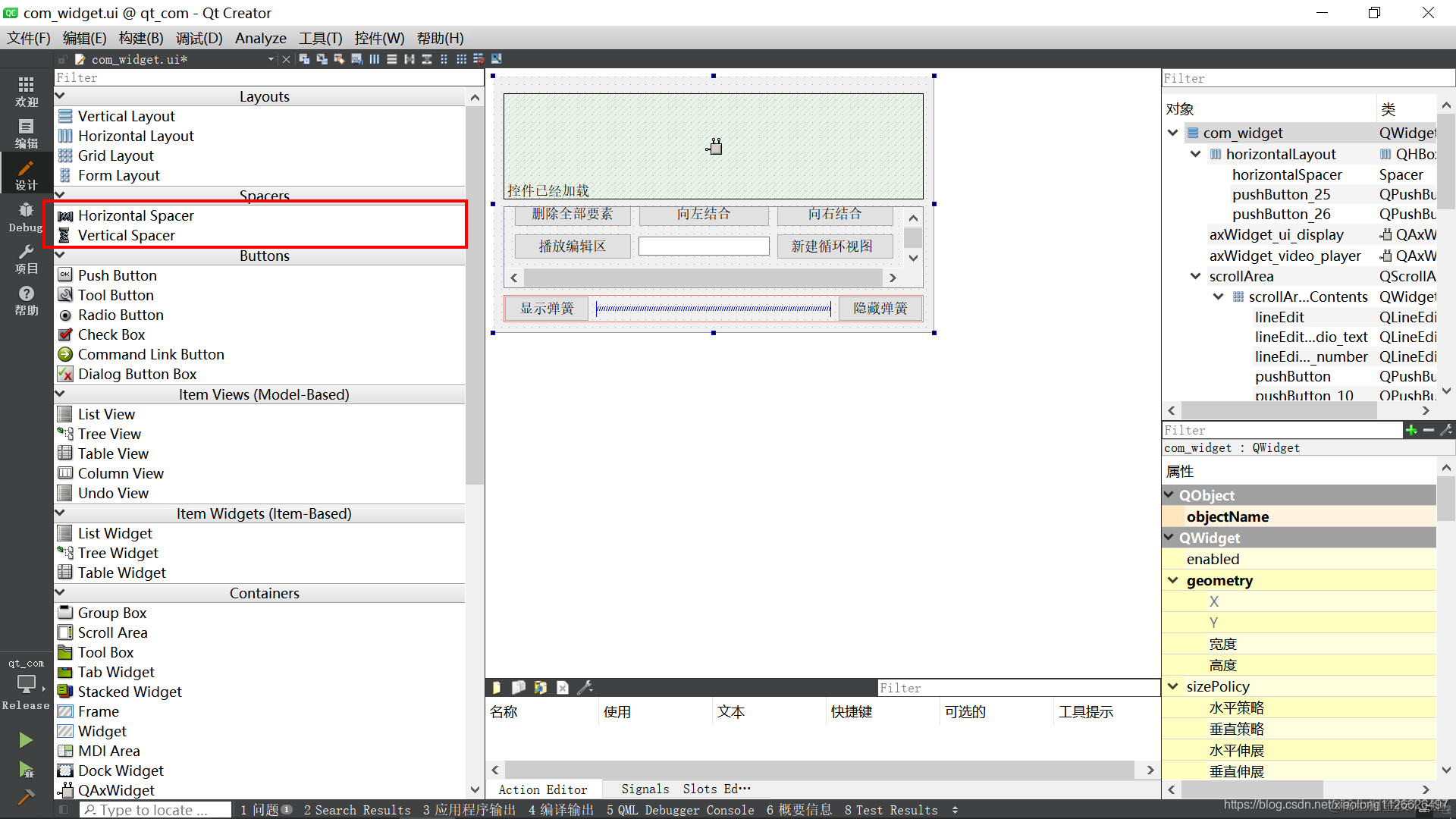 ui->horizontalLayout->update(); //更新弹簧控件所在的布局器