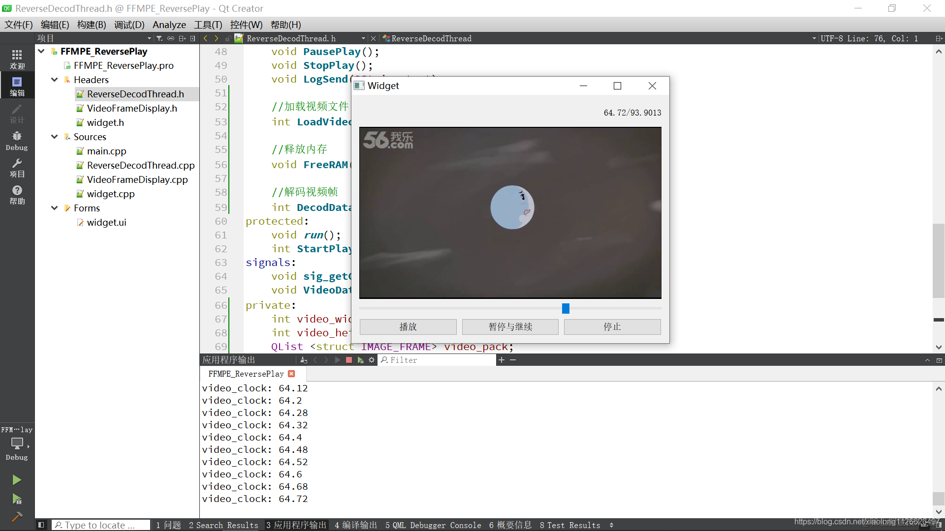 优化: (1) 目前代码里只用了一个线程读取数据、解码。如果想要倒放更加流畅,可以使用两个线程,两个队列。 一个读取,一个解码,再显示,这样就很流畅。