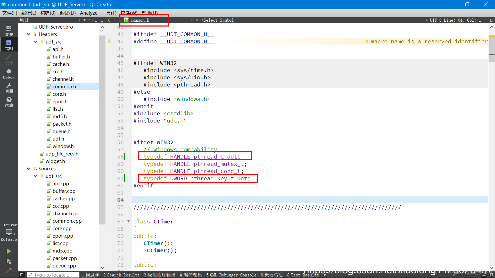 (1) 修改common.h文件56行 ----解决重定义问题