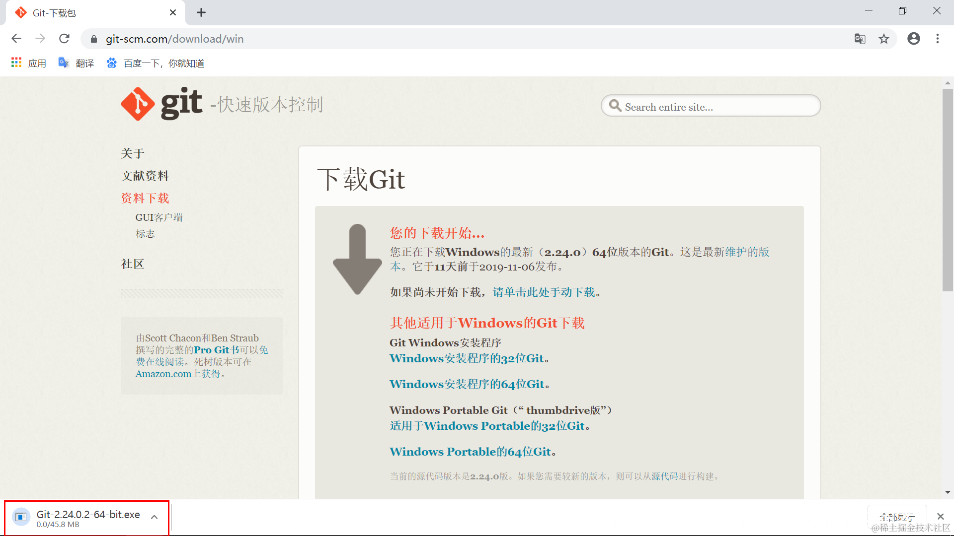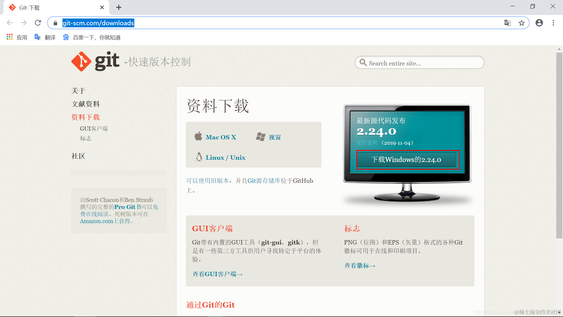 最常用常见的git客户端是git-scm,它提供了不同操作系统的版本。链接: https://git-scm.com/downloads