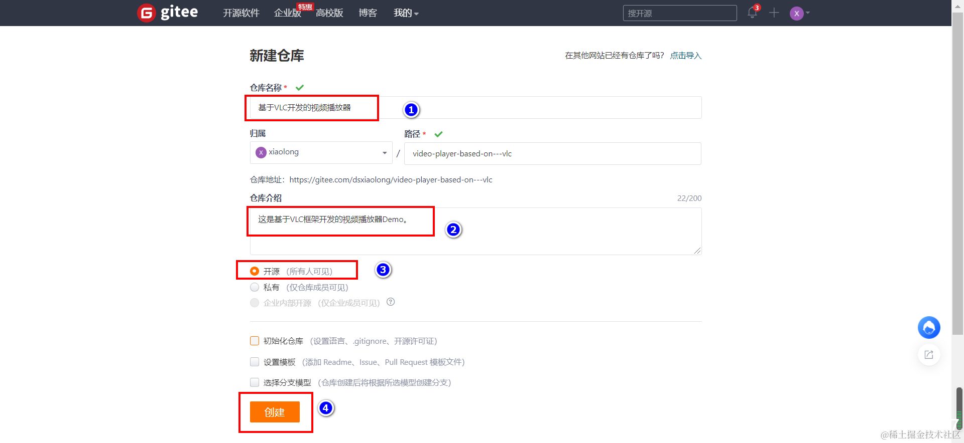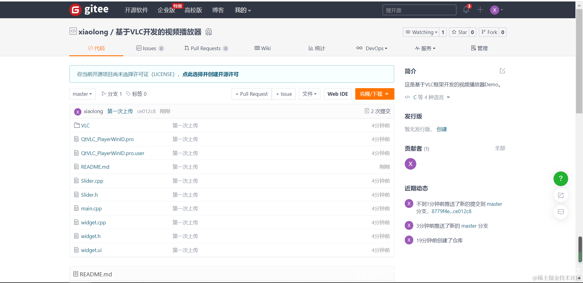 git remote add origin https://gitee.com/dsxiaolong/video-player-based-on---vlc.git #添加仓库地址