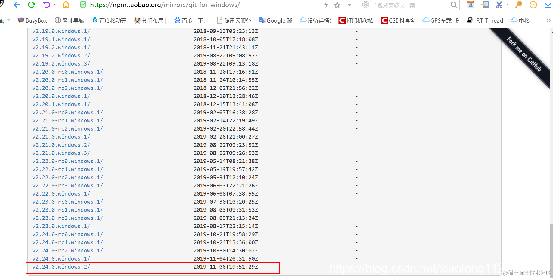 如果官网下载比较,可以使用阿里云的镜像下载: npm.taobao.org/mirrors/git…