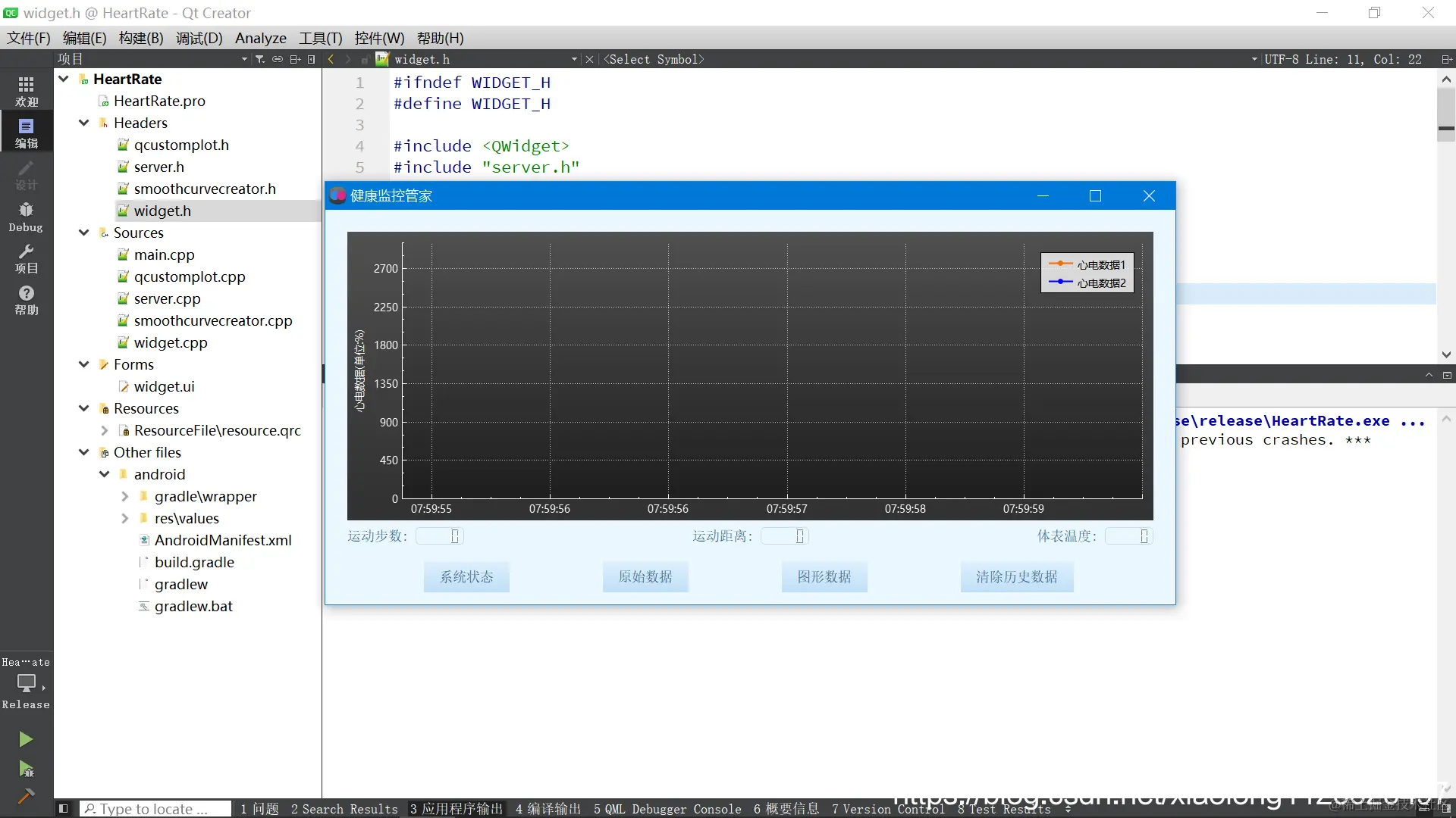 软件端接收设备上传的心电数据、运动数据、体温数据进行处理、存储显示。