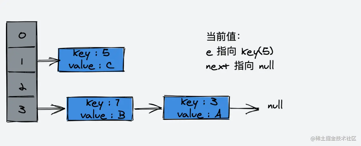 if ((k = e.key) == key || (e.hash == h && key.equals(k)))