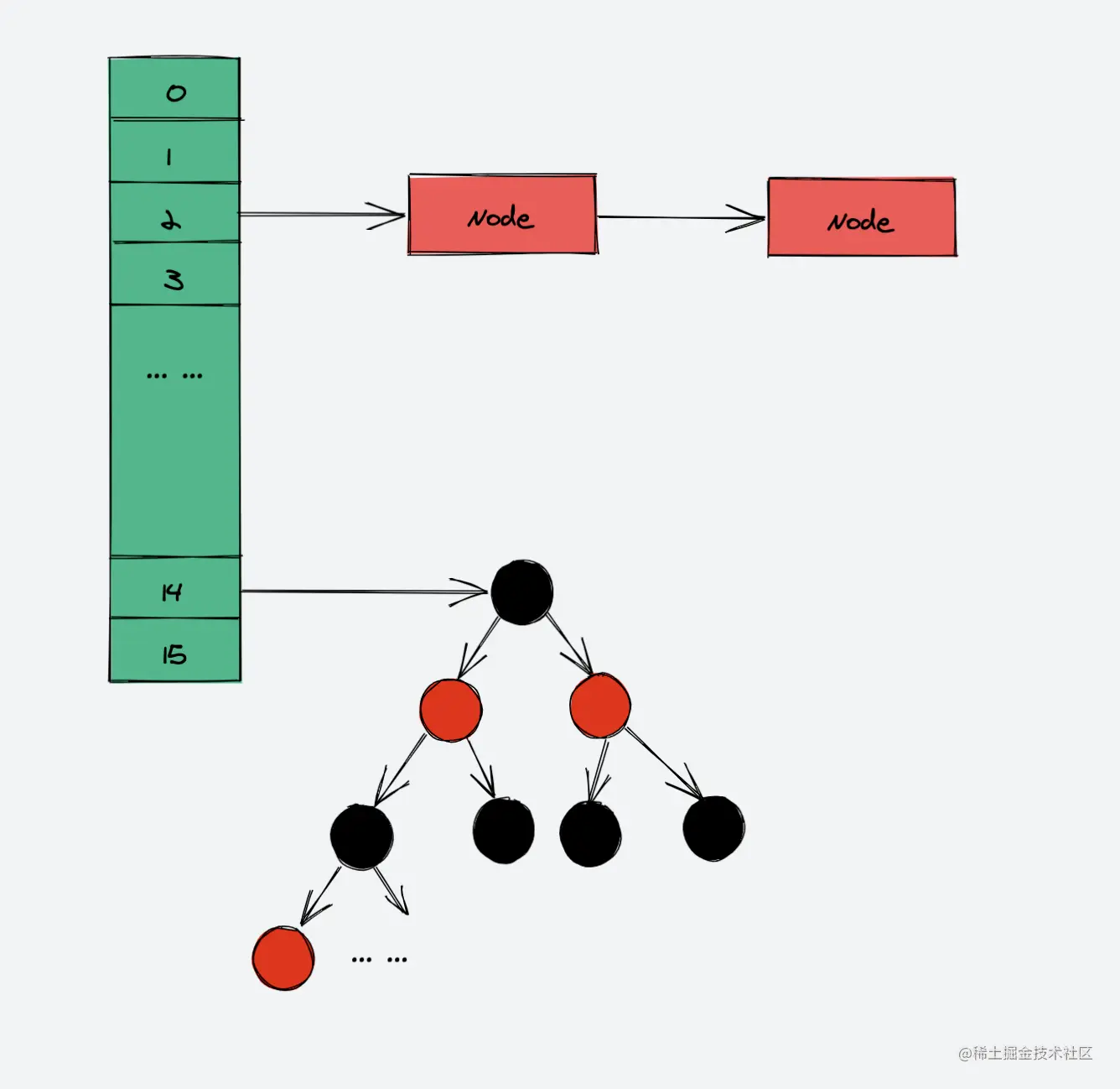 而在 JDK 8 中,ConcurrentHashMap 设计者 Doug Lea 抛弃了 Segment ,将原本的 HashEntry 改为了 Node,采用 CAS + synchronized+ 红黑树实现了并发下可用。