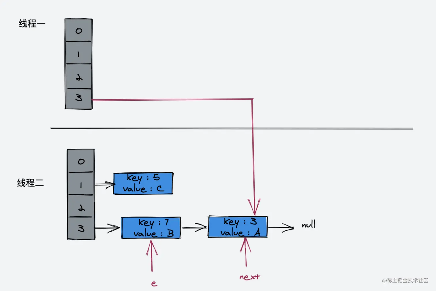 在 get 方法中,我们发现并不涉及到任何锁的操作,首先将 key 通过 hash 方法定位到具体的 segment 上,然后再调用一次 hash 方法定位到具体的元素上。因为 HashEntry 中的 value 属性通过 volatile 关键字修饰,保证对所有线程可见,所以 get 方法能够保证任何线程获取的都是最新值。